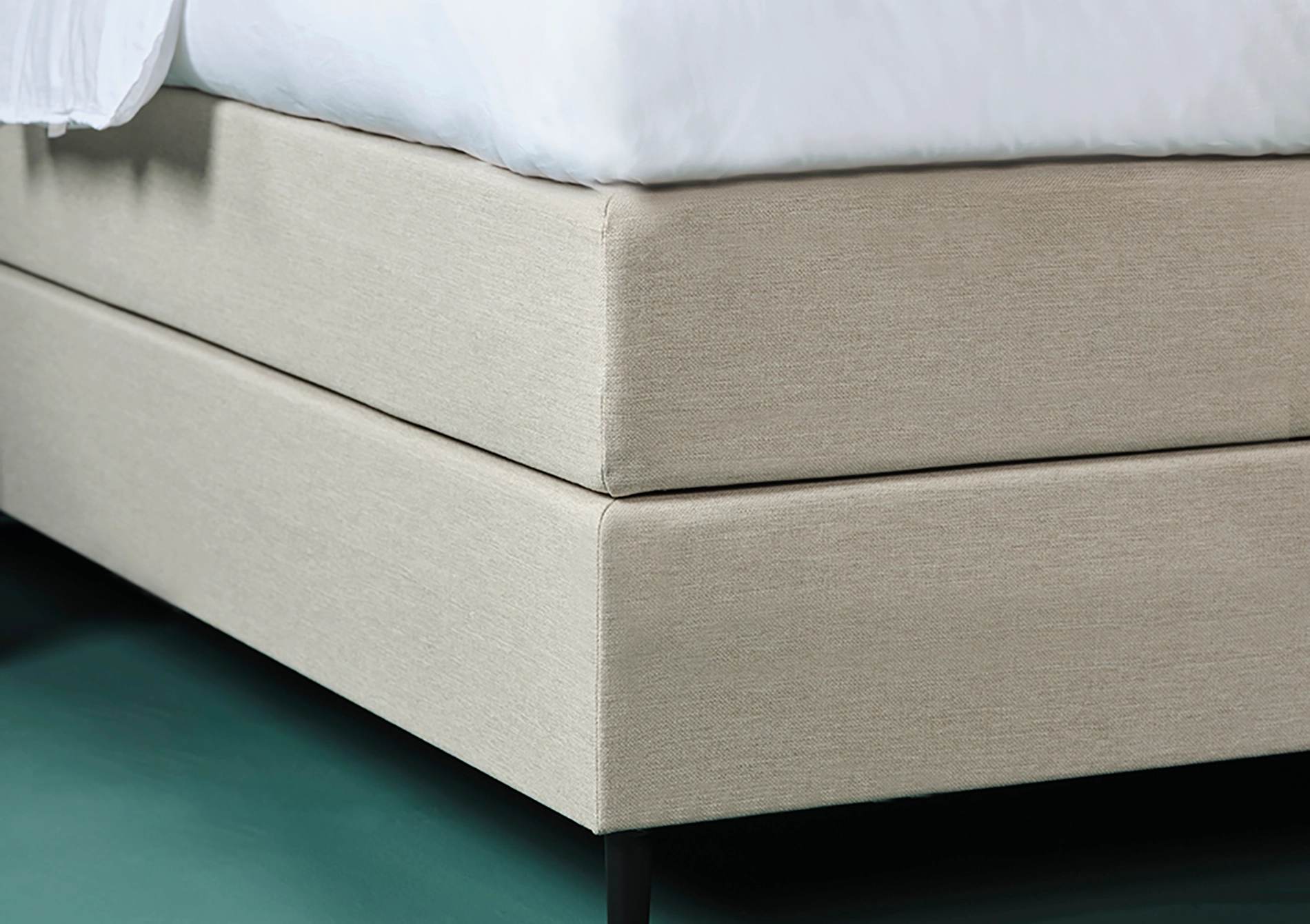 De Eastborn GO heeft een slank en modern design. De combinatie van de boxsprings, het bijpassende hoofdbord en de slanke zwarte pootjes, zorgt voor een tijdloze, rustige uitstraling die de slaapkamer direct verfraait.