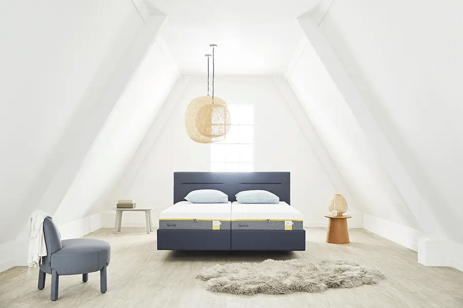 Natuurlijk wilt u een 2 persoons boxspring bed kopen. Heerlijk de ruimte en het meest ultieme comfort. Niet voor niets gebruiken de beste hotels in de hele wereld boxsprings in hun kamers. Dit komt omdat boxsprings goed ventileren, een langere veerweg hebben en bijna over de hele breedte hetzelfde veren. Dit hoeft helemaal niet duur te zijn. We hebben al een 2 persoons boxspring bed van de Nederlandse fabriek BedNL vanaf 1.298,– Maar natuurlijk kunt u ook een veel luxer product uit kiezen. Een bed vol natuurlijke materialen van Sleepeezee bijvoorbeeld. Dunlopillo talalay latex matrassen kunt u ook perfect combineren met bijna alle boxspring types. Zelfs Tempur heeft tegenwoordig zijn eigen boxspring programma. Dit bedden programma heet “One”.